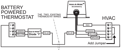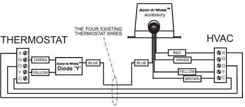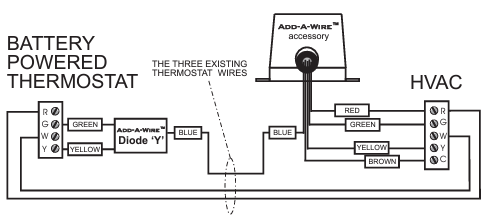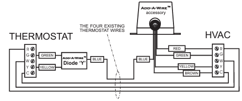 For thermostats that need 5 wires, the accessory is used with the existing 4 wires. This is where no extra wires can be run.