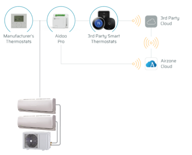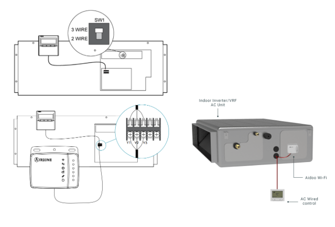 See below image illustrating Airzone Aidoo and the wired controller connection to an AC unit.