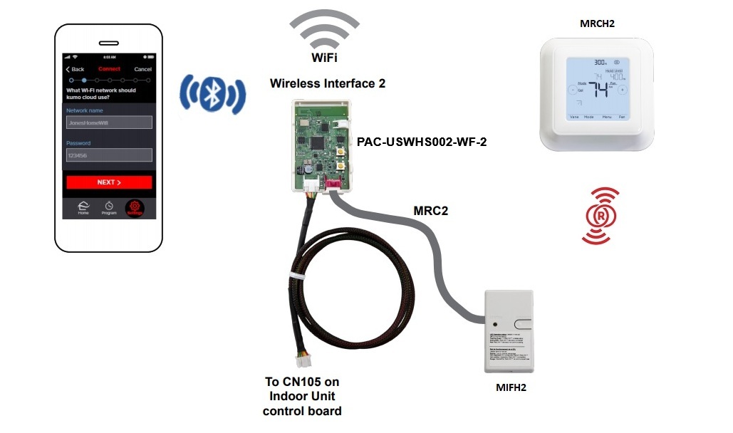 Mitsubishi Electric Trane releases a second-generation Mitsubishi Ductless Wireless interface, PAC-USWHS002-WF-2. Like the PAC-USWHS002-WF-1 Wireless Interface, Wireless Interface 2 is used with Kumo Cloud App to control and monitor Mitsubishi Mini ...