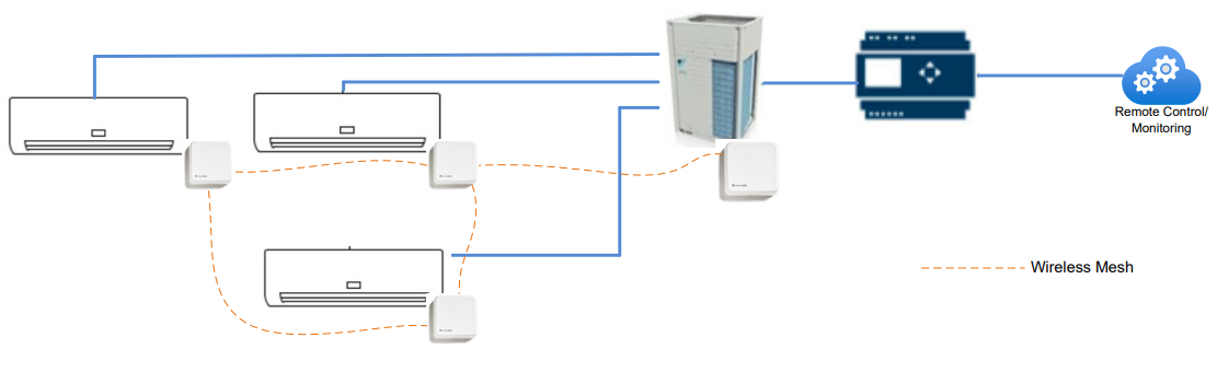 modbus to turn a wired modbus network of outdoor or indoor units to a wireless mesh network for either industrial or residential applications.