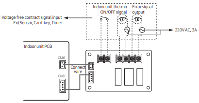 - Connect a 2 pin wire between the indoor unit PCB EXT_CTRL connection (CN83) and the external controller PCB CN83.
