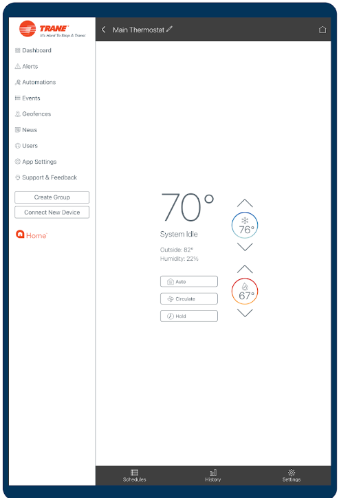 The Trane Home App enables home owners to monitor and control connected Trane air conditioners and smart home components from anywhere in the world. Some of home automation application components include lights, cameras, garage doors, locks and switches. It was previously the Nexia app and the functionalities are the same.